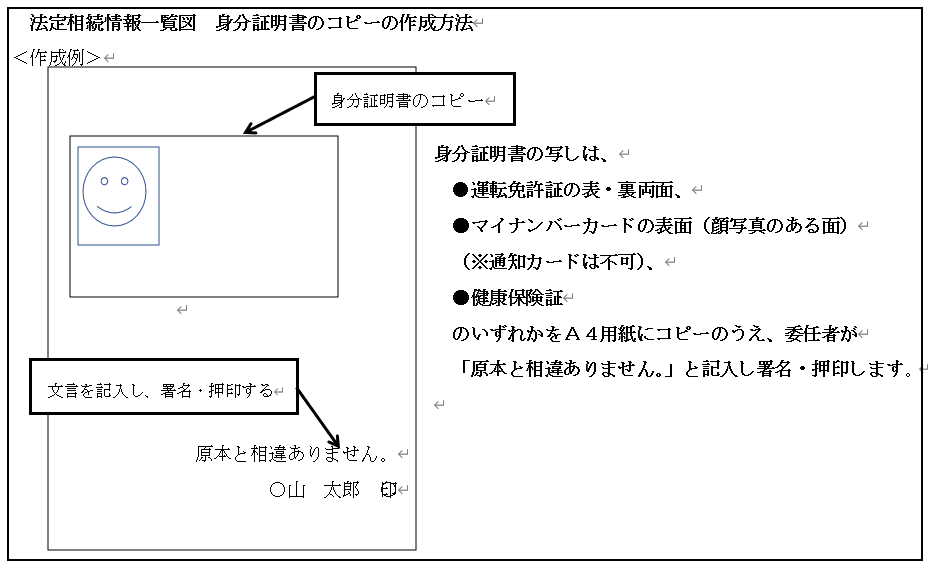 ⑧委任者の身分証明書の写し(※原本確認文言に注意!下図を参照)又は住民票